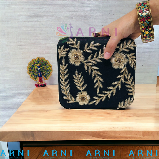 Cartera de color negro con flores
