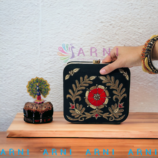 OfertaCartera Negro con Flor Rojo