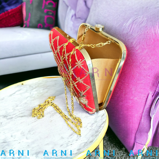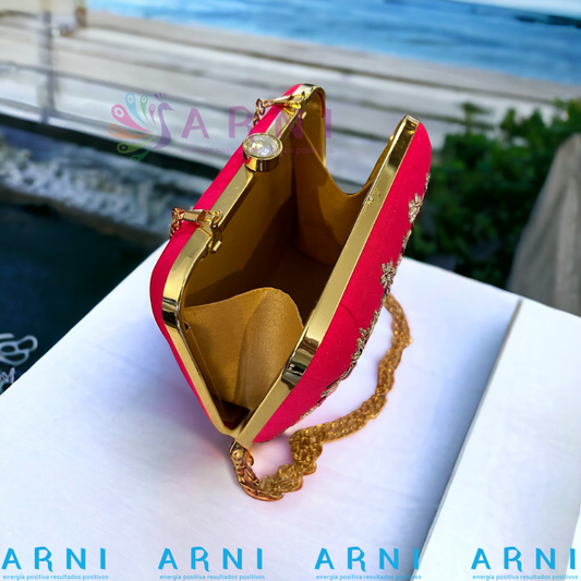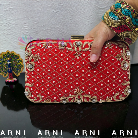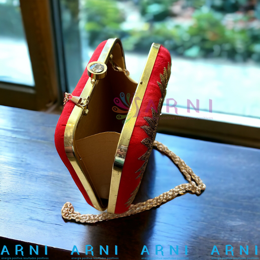 Cartera de color rojo con flores bordadas a mano