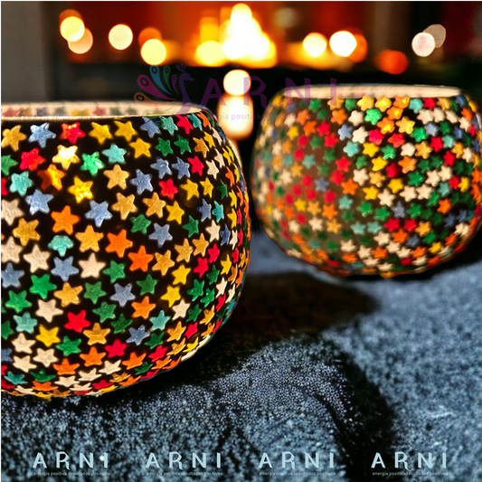 Porta Vela Candelabro - Modelo Estrellas- Hecho en India (Pack de 2)