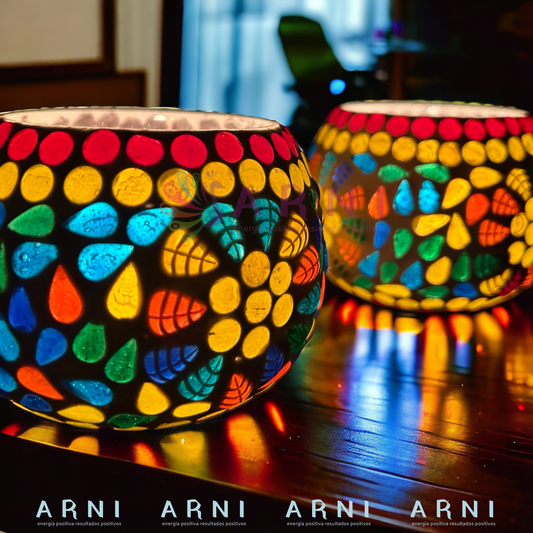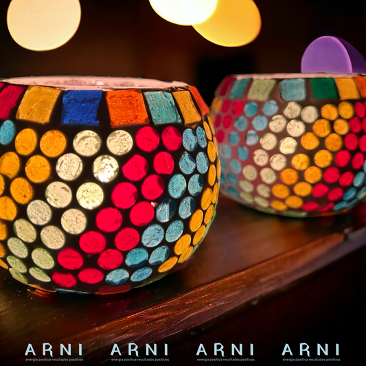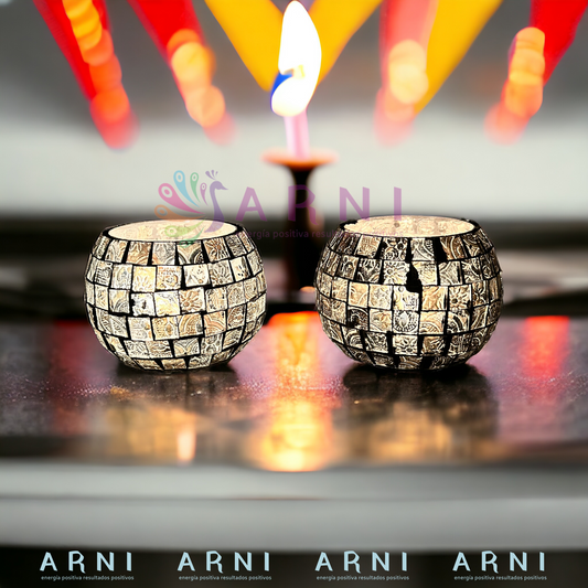 Porta Vela Candelabro - Modelo Tricolor - Hecho en India (Pack de 2)