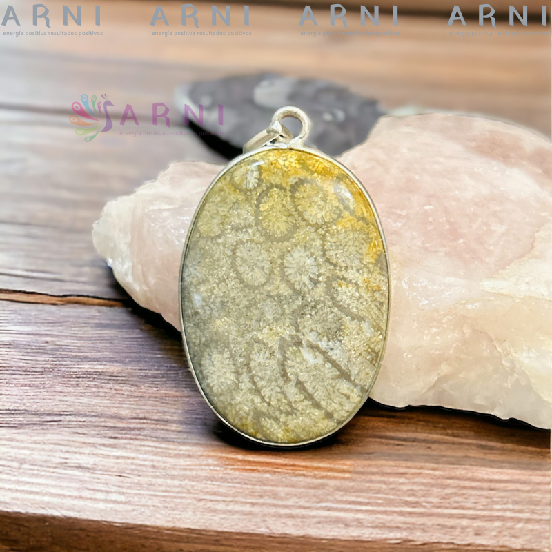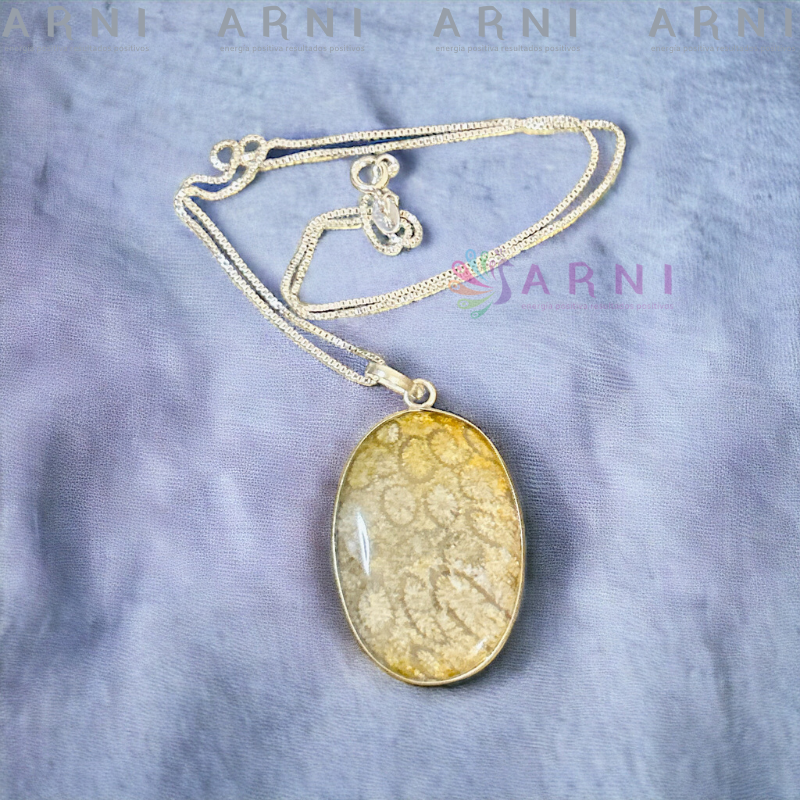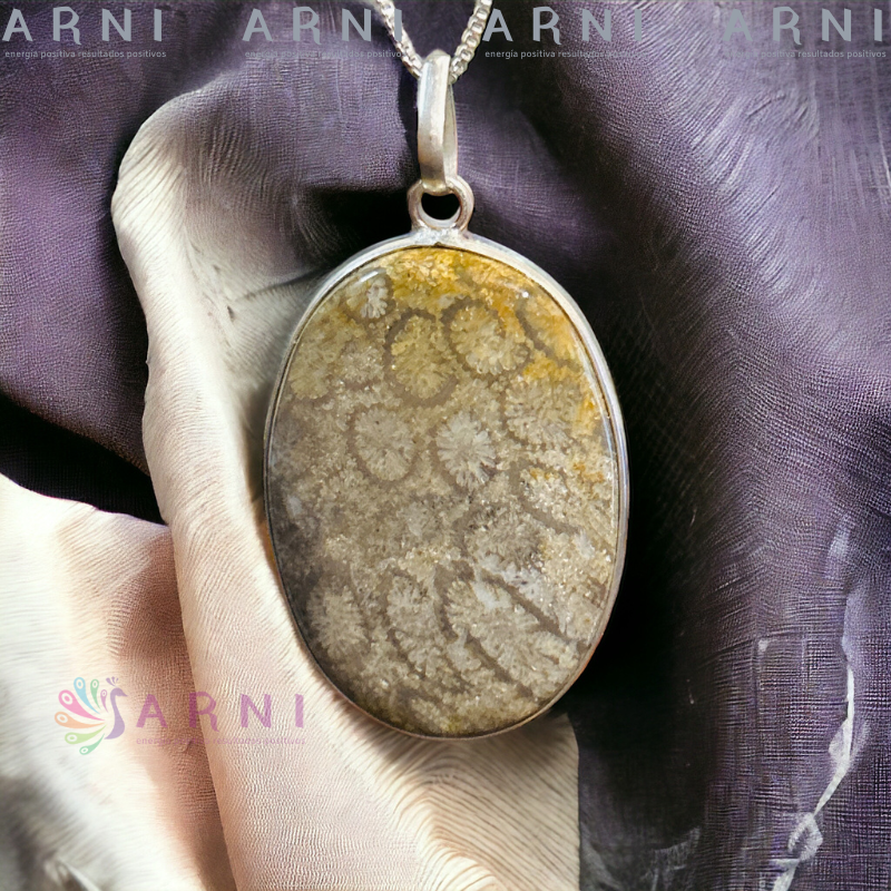 Es una hermosa pieza exclusiva de joyería con Fósil de Coral natural, hecha a mano por orfebres de India.