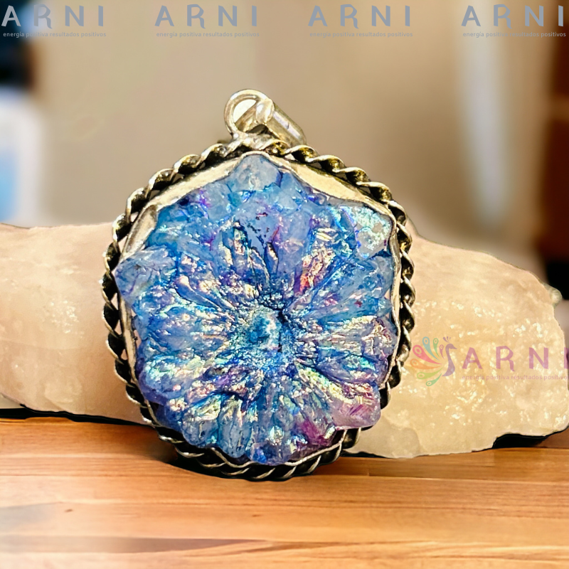 Es una hermosa pieza exclusiva de joyería con Cuarzo solar natural, hecha a mano por orfebres de India.